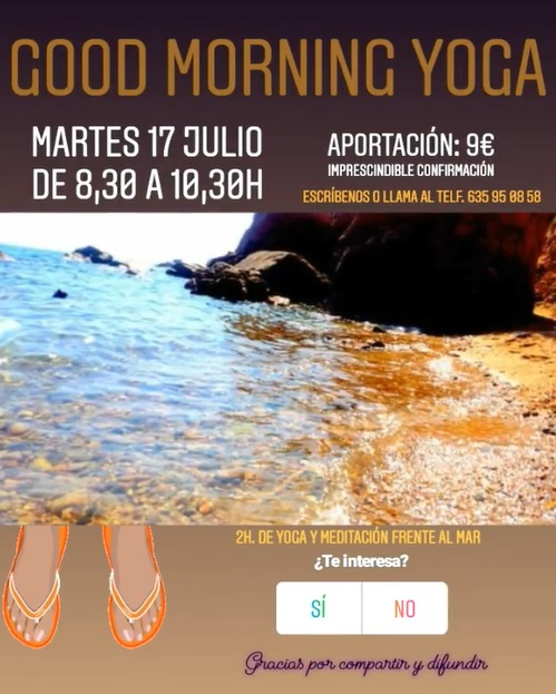 - Hemos programado algunas actividades extra en la playa para disfrutar del yoga y la meditación con el fresco de la brisa marina 🙂 os dejamos los flyers a continuación. Ya sabéis que para apuntaros solo tenéis que poneros en contacto.