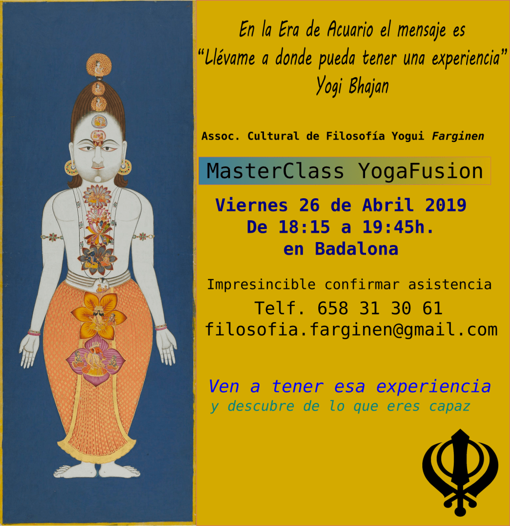Aquí os traigo otra propuesta para Abril 2019 😀 una MasterClass de Yoga Fusion que te permitirá sentir todo el poder de esta técnica que combina dos grandisimas enseñanzas tradicionales: el Hatha Yoga para facilitar la integración de opuestos y el Kundalini Yoga para ascender la energía.