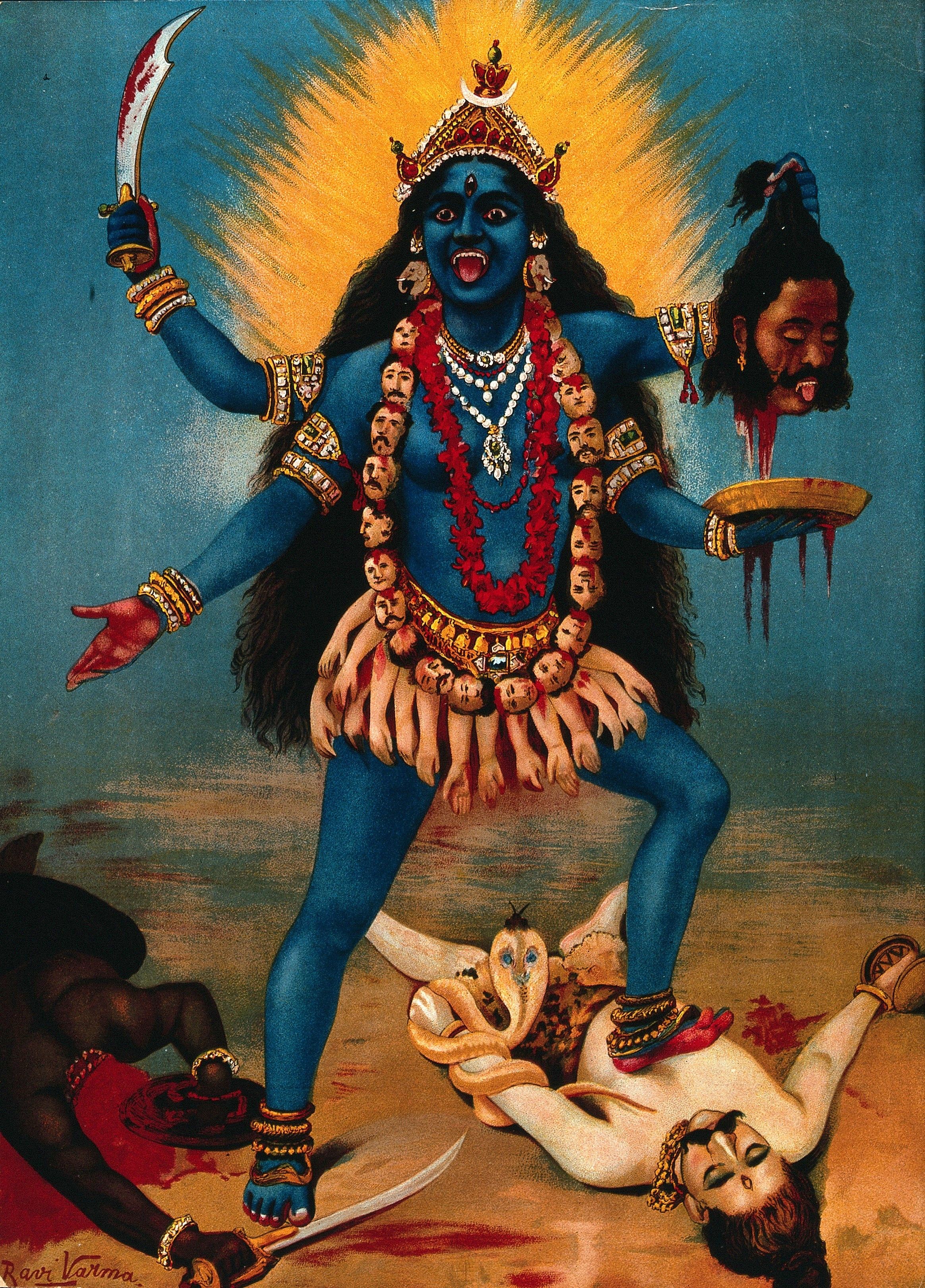 Mahakali nos sumerge en una noche intemporal, en el caos de donde surgen y se disuelven todas las formas. Diosa asociada a la destrucción del tiempo y el espacio. Se experimenta como un lugar de paz en las profundidades de ratri (la noche); y revelá el conocimiento del misterio de la realidad trascendente que hay más allá de ella.