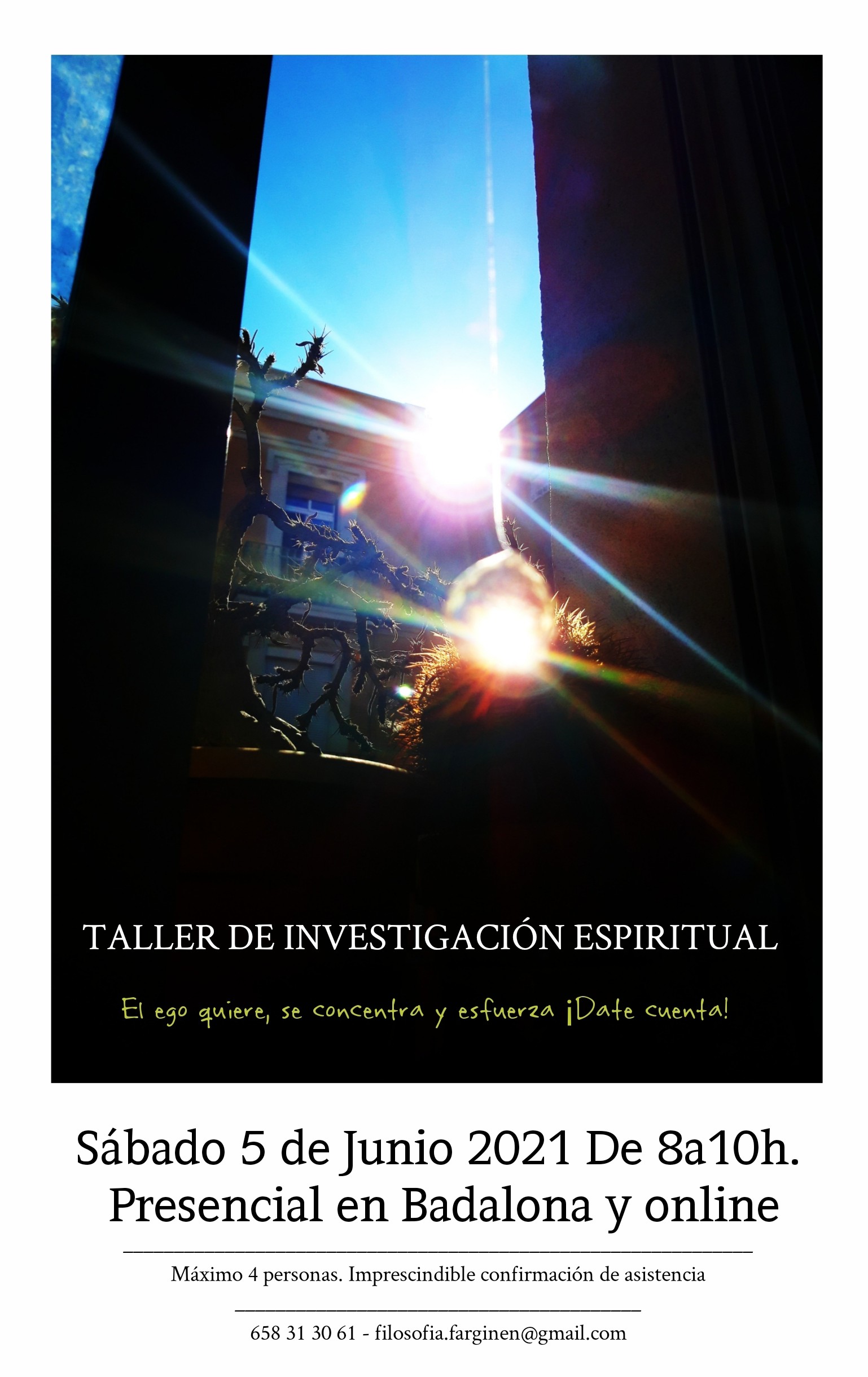 Taller gratuito Sábado 5 de Junio de 8a10h. en Badalona C/Cervantes, 144