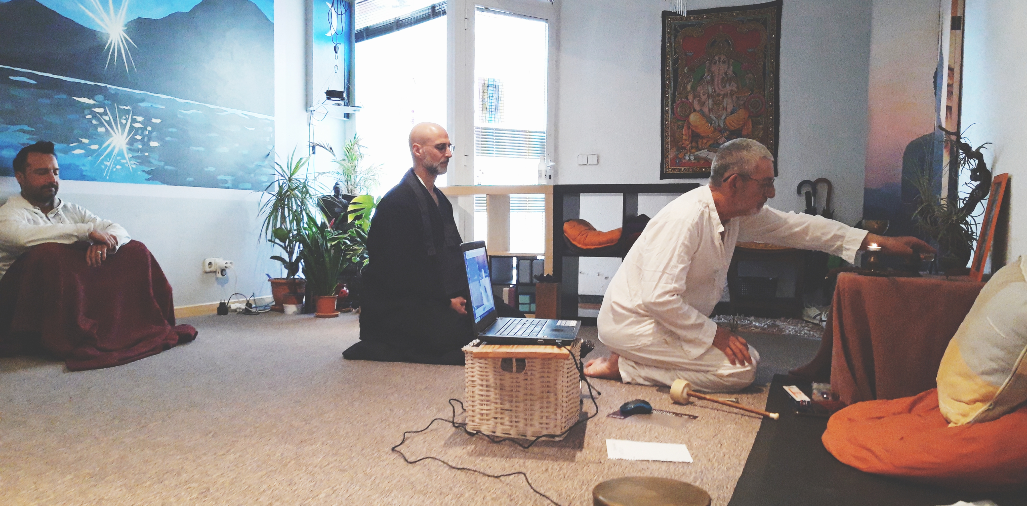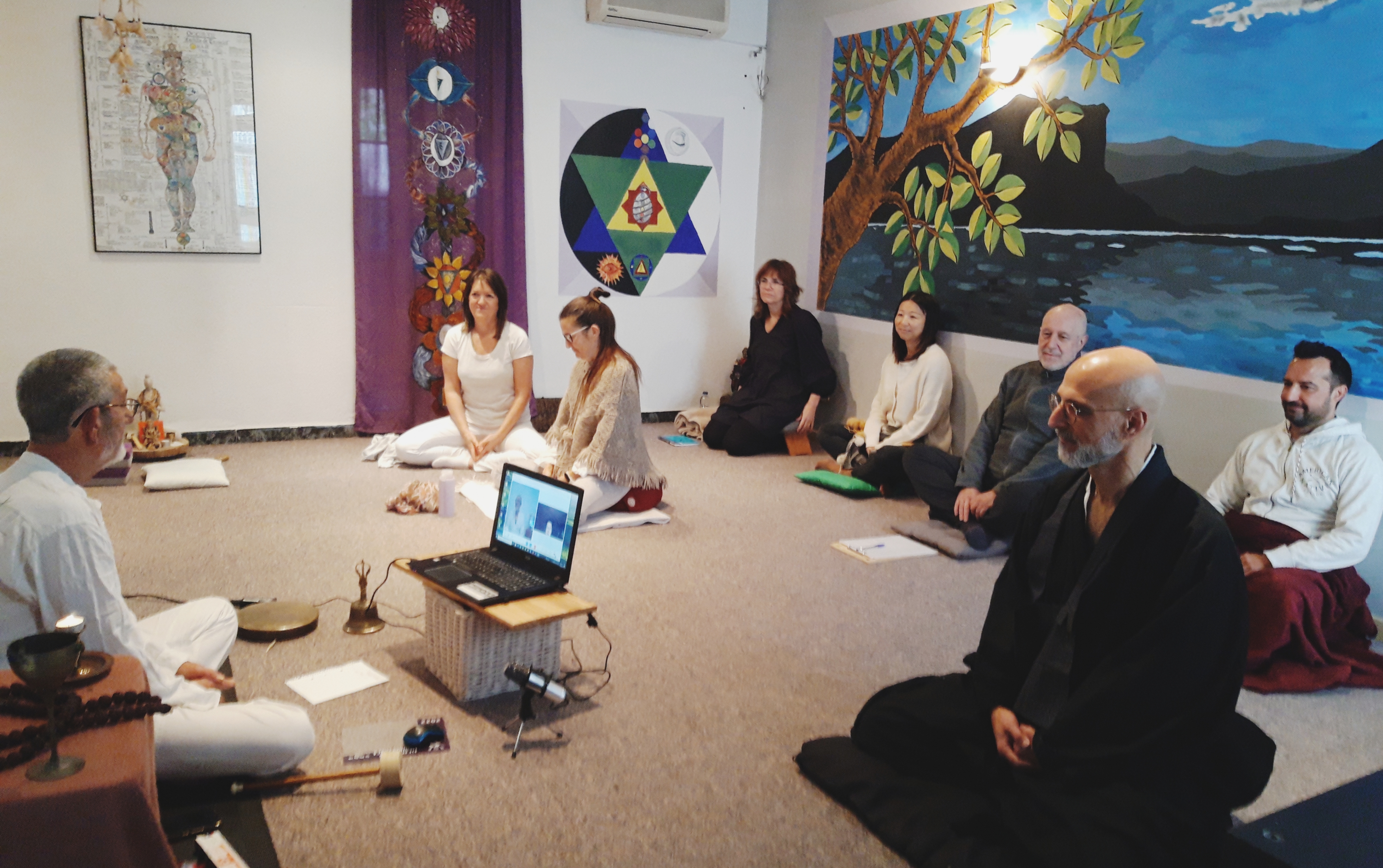 En esta ocasión hubo una transmisión con la mirada. Esta practica de atención establece una conexión silenciosa con un centro y canal que te lleva a sostener la atención, tanto cuando sucede el encuentro con los ojos, como cuando no. Se mantiene una linea de conexión meditativa en el que se sostiene la presencia.