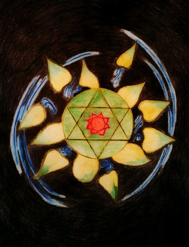 En Anahata chakra, que es el cuarto lo miremos desde arriba como desde abajo, observamos la relación entre el corazón y el cielo; y comprendimos donde se asienta nuestra identidad espiritual.