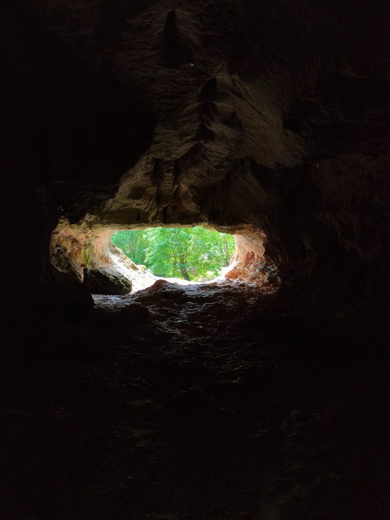 A través de una cueva el camino se oscurece y estrecha. Durante el recorrido el espacio cambia, puede ser pequeño o amplio..